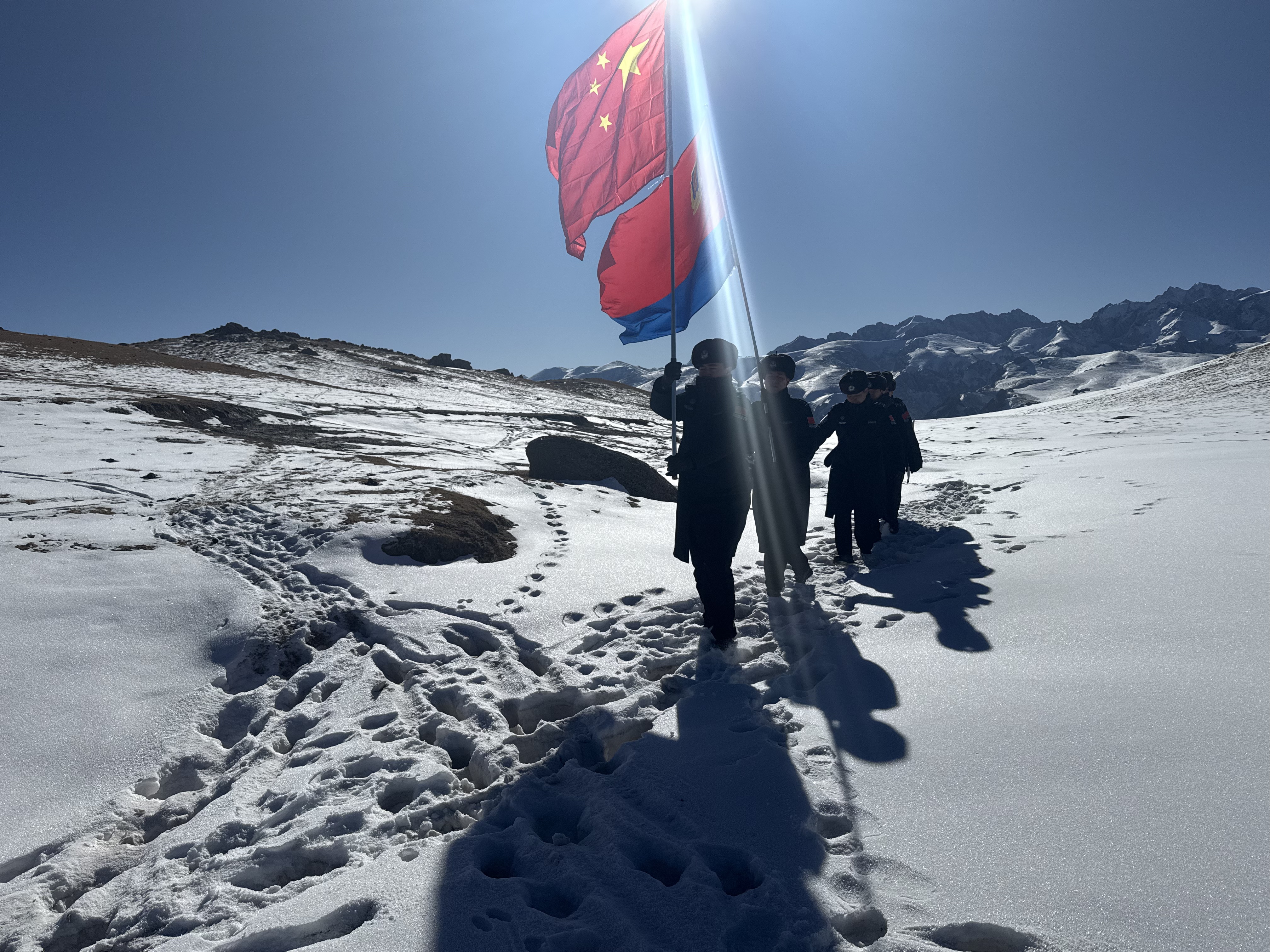 行至一处陡坡,民警吴永超脚下打滑,身旁民警立刻伸手扶住。“直到现在我才明白‘清澈的爱,只为中国’的重量。”吴永超抹了把脸上的霜花,目光坚定地望向远方界碑。当鲜红的 “中国” 二字出现在视野中,民警们整齐列队,面向界碑与警旗重温入警誓词,誓言在雪山间久久回荡。