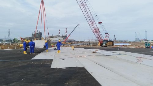 该工程位于印尼芝勒贡,主要施工内容为建造6.15万吨级干散货泊位、7.5万吨级液货泊位码头,栈桥,靠船墩台、防撞墩台、系缆墩台以及导助航系统、泊位进近系统等,各部分均为高桩梁板结构。项目建成后,将成为港口化工厂货物进出枢纽,吸引配套下游产业集聚,提升当地及周边地区贸易活跃度,推动产业配套完善,激发区域经济活力。