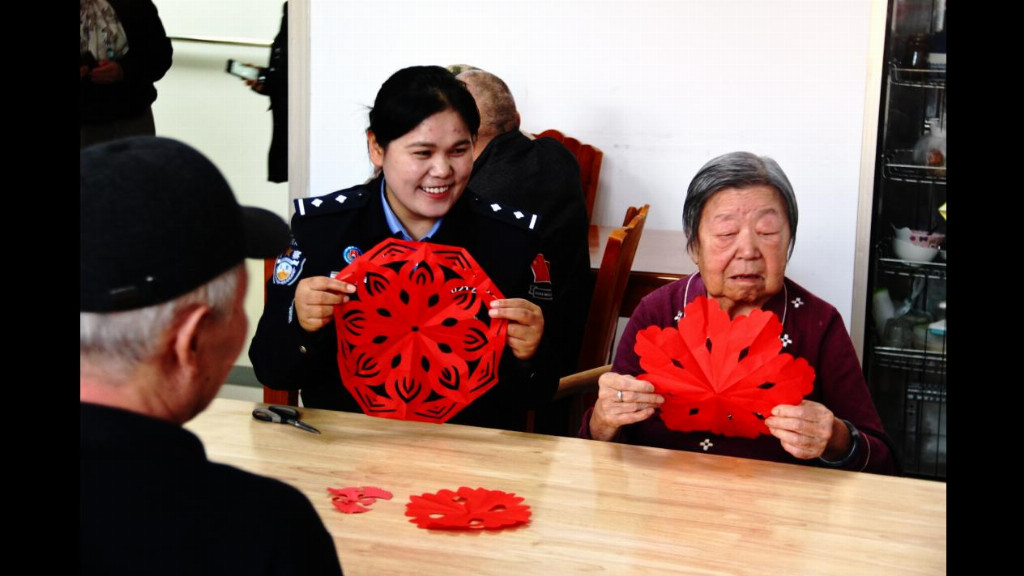 喝完粥,阳光正好斜进活动室的窗。红纸铺开,剪刀递到老人们手里。“奶奶,这朵梅花该怎么叠呀?”朱停停挨着一位奶奶坐下,像个小学生般请教。奶奶的手虽颤,却稳稳地教她折出第一个角。剪刀在红纸间游走,年轻的、苍老的手时而交叠,时而配合。碎纸屑像红雪花般落下,展开的,是牡丹,是梅花,更是两代人指尖相触的温度。那些窗花,最终被小心贴在每扇窗上——不是送来的礼物,而是共同完成的念想,是留在窗上的、看得见的团圆。